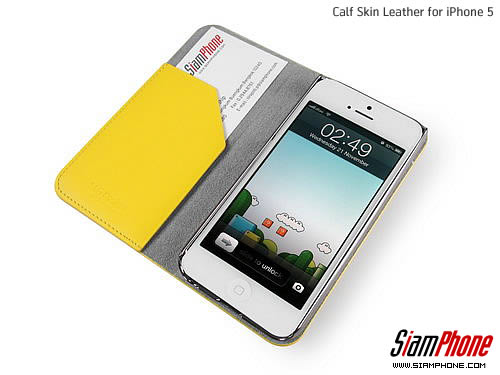 Calf Skin Leather ใช้งานเปิด-ปิดด้วยฝาพับด้านข้าง และการออกแบบที่ลงตัว ด้านในมีช่องสำหรับใส่นามบัตร และสามารถเข้าถึงปุ่ม หรือพอร์ตต่างๆ ได้ง่าย Calf Skin Leather เคสหนังแท้ สำหรับ iPhone 5 จำหน่ายในราคา 1,950 บาท