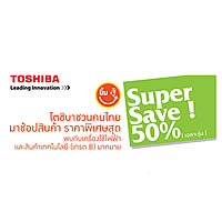 โตชิบาลดกระหน่ำ ต้อนรับเทศกาลแห่งการให้และส่งท้ายปีมังกร จัดกิจกรรม ‘Toshiba Super Save’ พบกับส่วนลดสุดพิเศษกว่า 50% สำหรับสินค้าเกรดบี และ ส่วนลดกว่า 30% สำหรับสินค้าเกรดเอ ไม่ว่าจะเป็นเครื่องใช้ไฟฟ้าภายในบ้านชิ้นเล็ก อาทิเช่น พัดลม เครื่องฟอกอากาศ เครื่องทำน้ำอุ่น เครื่องใช้ไฟฟ้าในครัว - หม้อหุงข้าว กระติกน้ำร้อน กระทะไฟฟ้า เตาอบไมโครเวฟ และสินค้าชิ้นใหญ่อย่าง ตู้เย็นและเครื่องซักผ้า รวมถึงสินค้าโน้ตบุ๊ก และอุปกรณ์ไอทีมากมายหลากหลายรุ่น