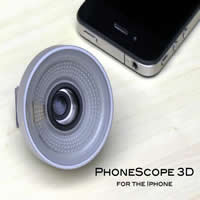 PhoneScope 3D ออกแบบมาสำหรับ iPhone 4 iPhone 4s และ iPhone 5 ชุดเลนส์ประกอบไปด้วยสองส่วน ได้แก่ คลิปเสียบเลนส์ marco กับ iPhone และเลนส์ Marco วัสดุทำมาจากกอลูมิเนียมทั้งหมด ตัวเลนส์มีไฟ LED ช่วยเพิ่มประสิทธิภาพให้การถ่ายภาพระยะใกล้ที่มีแสงน้อยได้มากขึ้น สามารถใช้ PhoneScope 3D กับ iPhone ที่ใส่เคสหรือไม่ใส่เคสก็ได้ โดยสามารถเลือกระดับความกว้างได้จากคลิปเสียบเลนส์ ปัจจุบัน PhoneScope 3D เป็นโปรเจคก์ของ Kickstarter สามารถติดตามรายละเอียดเพิ่มเติมได้ที่ www.Kickstarter.com