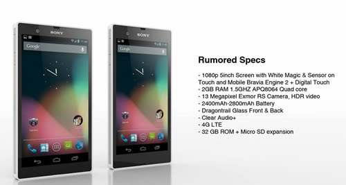คาดว่าปี 2013 Sony ญี่ปุ่นจะนำสมาร์ทโฟน 2 รุ่น ใหม่อย่าง Sony Odin และ Yuga ออกสู่ตลาดสมาร์ทโฟนในญี่ปุ่น และในวันนี้มีภาพสมาร์ทโฟนทั้งสองรุ่นถูกปล่อยมาจากเว็บไซต์ it168.com โดยแสดงให้ได้เห็นถึงคอนเซ็ปต์รูปร่างหน้าตาของ Sony Odin และ Yuga ออกมาให้ได้ชมกัน พร้อมเผยสเปคตัวเครื่องออกมาเพียงบางส่วน