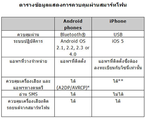 * สมาร์ทโฟน และแอพฯต้องใช้งานได้กับเทคโนโลยี Bluetooth’s A2DP and AVRCP.