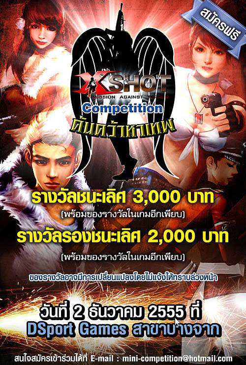 ทีมงาน Xshot พร้อมสนับสนุนนักกีฬา Xshot E-Sport ทุกท่านที่ต้องการก้าวสู่ระดับแนวหน้าอย่างเต็มที่ และเชื่อว่าทีมที่มีการฝึกซ้อมมาอย่างดีจะได้รับรางวัลตามที่ตั้งใจไว้แน่นอน แล้วพบกันในวันที่ 2 ธันวาคมนี้ ที่ร้าน D-Sport สาขาบางจากนะครับ สำหรับเพื่อนๆ คนไหนที่ต้องการทราบข้อมูลเกี่ยวกับการแข่งขันรายการนี้เพิ่มเติมสามารถติดตามกันต่อได้ที่ http://xshot.winner.co.th/intro/intro.html