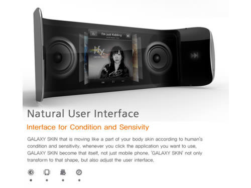 แม้ว่า Samsung Galaxy S4 หรือเรือธงรุ่นต่อไปของ Samsung ยังไม่เผยโฉมออกมาในขณะนี้ แต่ด้วยข้อมูลที่ผู้พัฒนาเทคโนโลยีของ Samsung ได้โชว์ให้เราเห็นเมื่อไม่กี่เดือนที่ผ่านมา ไม่ว่าจะเป็นเรื่องของหน้าจอสัมผัสและแบตเตอรี่ที่มีความยืดหยุ่น สามารถโค้งงอได้ ก็เกิดเป็นไอเดียคอนเซปต์สมาร์ทโฟน Samsung Galaxy Skin ตามรูปที่เห็นด้านล่าง ไม่แน่ว่าอีกสัก 10 หรือ 20 ปีข้างหน้า สมาร์ทโฟนแอนดรอยด์จะมีรูปร่างเป็นแบบนี้ มีหน้าจอพับได้ บิดได้ ใส่ข้อมือเป็นนาฬืกาได้เลย แถมยังมีดีไซน์เพรียวบาง ส่วนติดต่อผู้ใช้ที่ปรับแต่งได้ตามความเหมาะสม และยังมีโปรเจคเตอร์ในตัวเหมือน Samsung Galaxy Beam งานนี้ต้องขอขอบคุณดีไซน์เนอร์ Haeyon You ที่นำภาพไอเดียคอนเซปต์เจ๋งๆ Samsung Galaxy Skin มาให้เราชมกัน