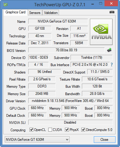 ผลทดสอบประสิทธิภาพกราฟิก NVIDIA GeForce GT 630M ด้วย 3DMark11 ได้ 1030 คะแนน