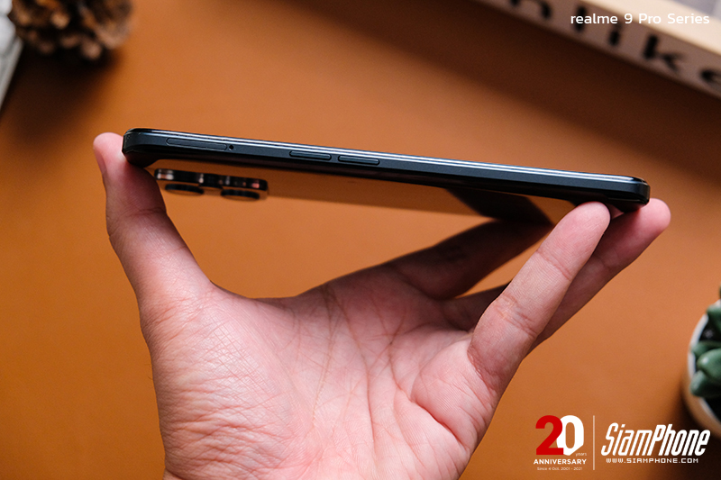 การจัดวางปุ่มและตำแหน่งของพอร์ตต่างๆ ของ realme 9 Pro+ และ realme 9 Pro เรียกได้ว่าเหมือนกัน จะต่างกันเพียงเล็กน้อยคือในส่วนของปุ่ม Power ที่อยู่ทางด้านขวามือ โดยในรุ่น realme 9 Pro จะมีเซ็นเซอร์สแกนลายนิ้วมือเพื่อปลดล็อคด้วย ส่วน realme 9 Pro+ ไม่มี เพราะเซ็นเซอร์จะติดตั้งอยู่ที่ใต้หน้าจอแล้ว