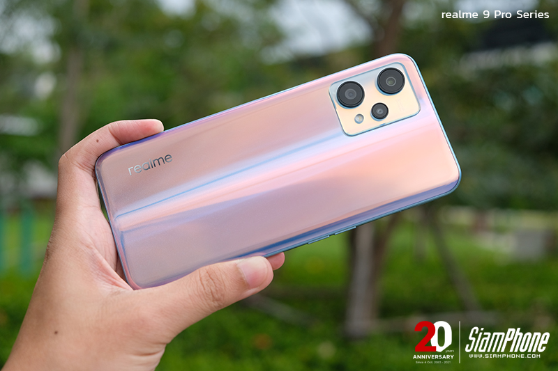 realme 9 Pro และ realme 9 Pro+ มีการออกแบบฝาหลังที่เป็นเอกลักษณ์มากขึ้น พื้นผิวเรียบลื่น ให้สัมผัสที่หรูหรา มีเอ็ฟเฟคความระยิบระยับพร้อมแสงที่ลอดผ่าตรงกลางเครื่อง ให้ความรู้สึกการเคลื่อนไหวของดวงดาว และยังมีความพิเศษที่เฉดสี Sunrise Blue ซึ่งใช้เทคนิค Light Shift Design ฝาหลังตัวเครื่องจะสามารถเปลี่ยนสีได้เมื่อสัมผัสโดนเข้ากับแสงแดด โดยจะเปลี่ยนสีจากสีฟ้าเป็นสีชมพูอย่างโดดเด่นภายใน 3 วินาที และหากไม่มีแสงแดด สีฝาหลังจะจางลงใน 2-5 นาทีนั่นเอง