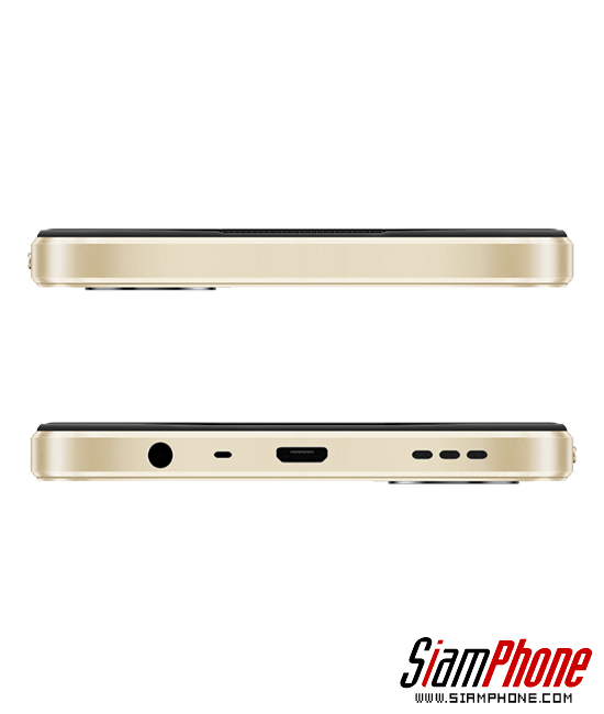 ถึงแม้ OPPO A17k จะพกแบตเตอรี่ขนาดใหญ่ถึง 5,000mAh มาด้วยก็ตาม แต่ตัวเครื่องกับมีความบางเพียง 8.29 มิลลิเมตร และมีน้ำหนัก 189 กรัม ผสานกับขอบเหลี่ยมสุดคลาสสิก ช่วยให้การจับใช้งานสบายมือยิ่งขึ้น มอบรูปลักษณ์ที่ดูดีและพรีเมี่ยม มีให้เลือก 2 สี ได้แก่ สีทอง Gold และสีน้ำเงินเข้ม Navy Blue ซึ่งสีที่เราได้มารีวิวเป็นสีทอง Gold ที่ดูสวยงาม เรียบง่าย แต่ซ่อนความหรูหราไว้ เพิ่มความโดดเด่นให้กับโมดูลกล้องหลังด้วยลายแท็กเจอร์ที่ตัดกับฝาหลังแบบด้าน ซึ่งเป็นผิวเรียบลื่น ทนต่อการเกิดรอยนิ้วมือได้ดี