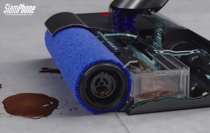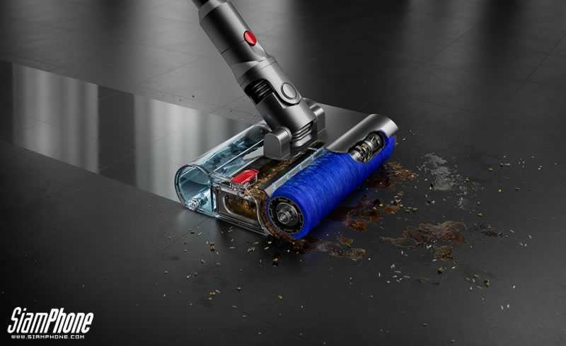 หัวดูดลูกกลิ้งแบบเปียก Dyson Submarine™ ได้รับการออกแบบทางวิศวกรรมที่แม่นยำเพื่อทำความสะอาดด้วยน้ำที่หยดลงบนลูกกลิ้งเพื่อขจัดสิ่งสกปรก คราบฝังแน่น และเศษขยะชิ้นเล็กอย่างเศษอาหารได้อย่างมีประสิทธิภาพ