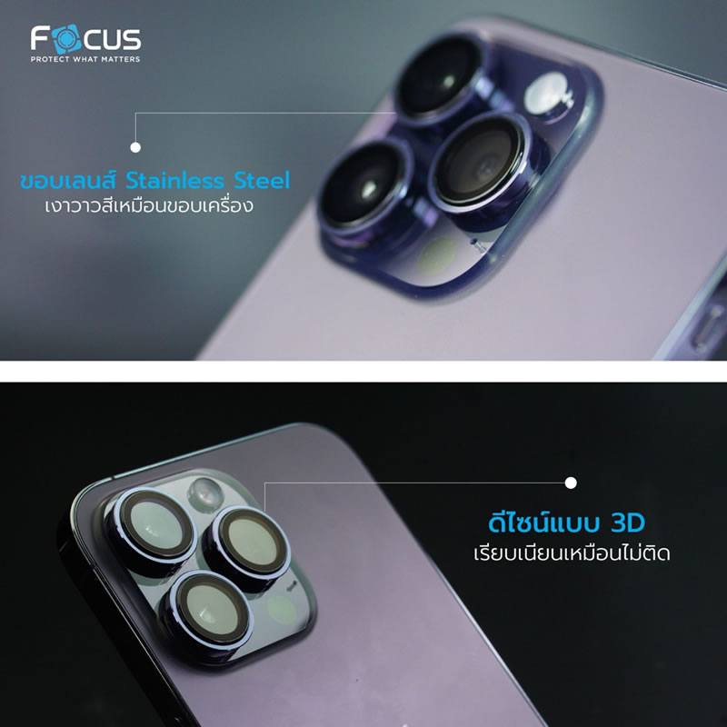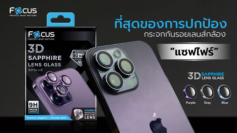 การป้องกันสาเหตุเหล่านั้นจะต้องติดกระจกกันรอยคุณภาพสูงเท่านั้น ขอแนะนำ Focus 3D Sapphire Lens Glass ที่สุดของการปกป้องเลนส์กล้อง แค่ติด กระจกกันรอยเลนส์กล้องแซฟไฟร์โฟกัสก็ยกระดับความแกร่ง แข็งแรงกว่าเดิม พร้อมความสวยพรีเมียม เรียบเนียนเหมือนไม่ได้ติด โดยรับประกันนาน 90 วัน ราคาวางจำหน่ายเพียง 1,290 บาท