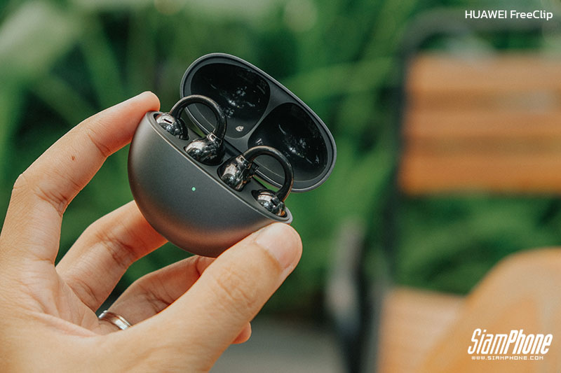 HUAWEI FreeClip หูฟังไร้สาย TWS รุ่นใหม่จากแบรนด์ HUAWEI ที่มีความโดดเด่นด้วยดีไซน์แปลกใหม่ก้านโค้ง C-bridge ใส่ใช้งานแบบคลิปหนีบ หรือเกี่ยวหู พร้อมผสมผสานความสบายตามหลักสรีรศาสตร์ ช่วยใส่ใช้งานได้ตลอดทั้งวันแบบไม่มีอาการเจ็บหู ไม่พอแค่นั้นยังเป็นหูฟังแบบ Open-ear จุกหูฟังไม่ยัดในรูหู แต่ยังคงคุณภาพเสียงไว้อย่างดี และยังมีเทคโนโลยี AI Crystal-Clear Call ช่วยให้การคุยสายสนทนามีความชัดมากขึ้น ส่วนตัวเคสก็ดูสวยงามเช่นกันด้วยการออกแบบคล้ายๆ ฝาหอย และรองรับการชาร์จผ่านพอร์ต USB Type-C