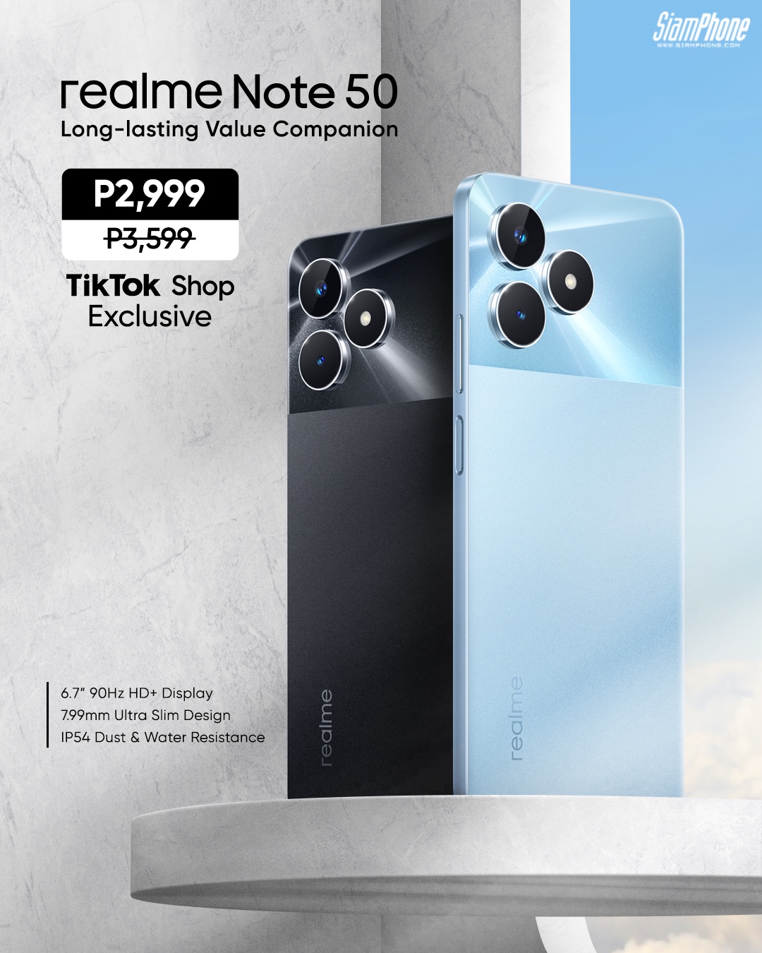 realme Note 50 มีให้เลือก 2 สี ได้แก่ สี Sky Blue และสี Midnight Black วางจําหน่ายแล้วในประเทศฟิลิปปินส์ มีราคาอยู่ที่ 3,599 PHP หรือประมาณ 2,2xx บาท และคาดว่าจะขยายไปยังตลาดอื่นๆ เร็วๆ นี้