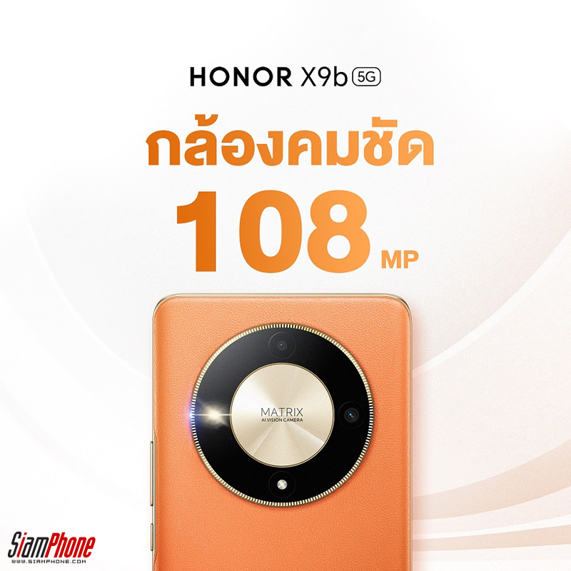 ตัวกล้องของ HONOR X9b มีความโดดเด่นที่เป็นเอกลักษณ์ไม่เหมือนใคร ด้วยระบบกล้องสามตัว ได้แก่ กล้อง Ultra-Clear ความละเอียด 108MP, กล้อง Ultra-Wide 5MP และ กล้อง Macro 2MP มอบประสบการณ์การถ่ายภาพที่เหนือกว่า ทำให้การภาพถ่ายของทุกคนได้คุณภาพ โดยกล้อง Ultra-Clear 108MP มาพร้อมเซ็นเซอร์ขนาดใหญ่ 1/1.67 นิ้ว และรูรับแสงขนาดใหญ่ f/1.75 ทำให้สามารถจับแสงได้มากขึ้นและทำให้ภาพที่ถ่ายคมชัด
