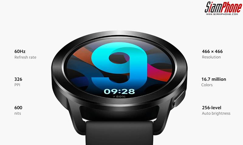 ตัวเรือนเป็นทรงกลม มีปุ่มข้างขวา 2 ปุ่ม ได้มาตรฐานกันน้ำ 5ATM หน้าปัดก็เป็นทรงกลมเช่นกัน มีพาแนล AMOLED กว้าง 1.43 นิ้ว ความละเอียด 466x466 พิกเซล ปรับความสว่างได้สูงสุด 60Hz ปรับความสว่างได้สูงสุด 600nits และรองรับโหมด Always-On Display
