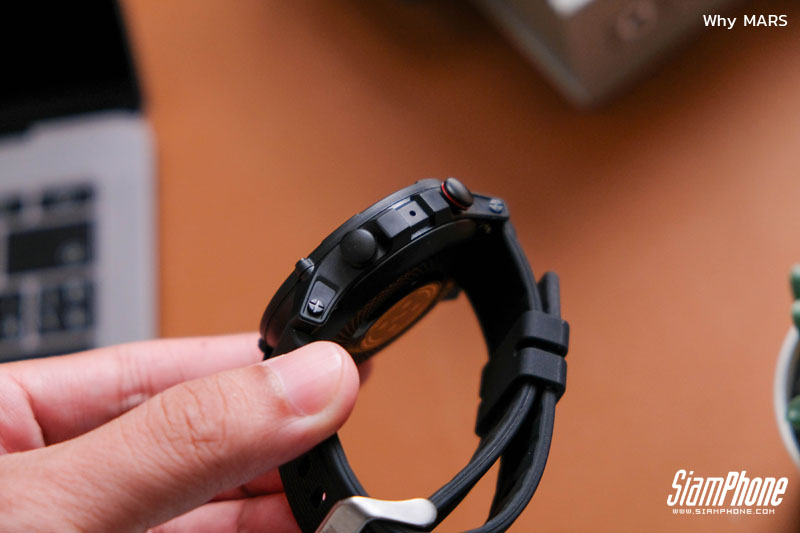 ด้านขวาของตัวเรือนมี 2 ปุ่ม สำหรับควบคุมการใช้งาน ปุ่มบนเป็นปุ่ม Power ปุ่มล่างเป็นปุ่ม Back ตัวปุ่มจะเป็นทรงโค้งนูนออกมา กดแล้วสบายมือ ถือว่าออกแบบปุ่มการใช้งานได้ดีมาก