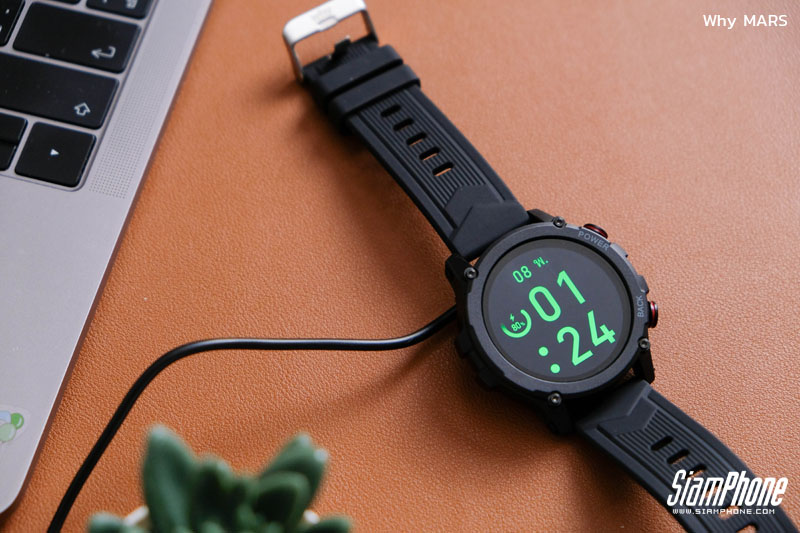 WHY MARS มีความจุแบตเตอรี่ 320 mAh โดยสมาร์ทวอชรุ่นนี้จะชาร์จแบตเตอรี่ผ่านพินแม่เหล็ก ระยะเวลาใช้งานปกติสามารถอยู่ได้ถึงประมาณ 10 - 15 วัน และใช้งานแบบ Standby Mode ได้ยาวนานสูงสุด 15 วันเลยทีเดียว