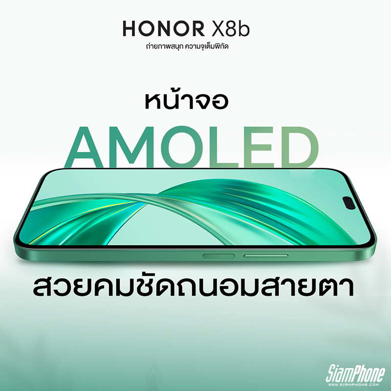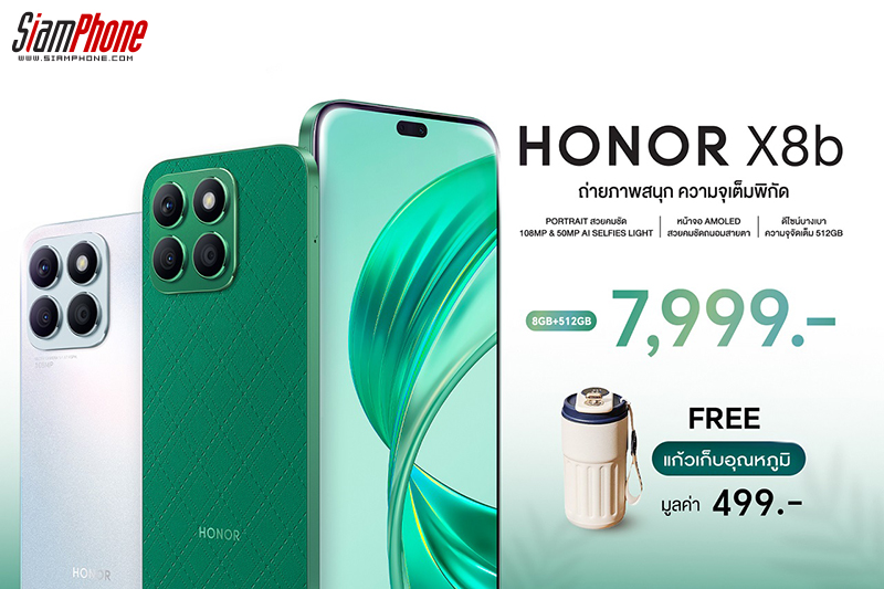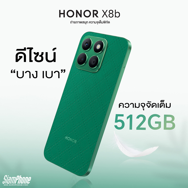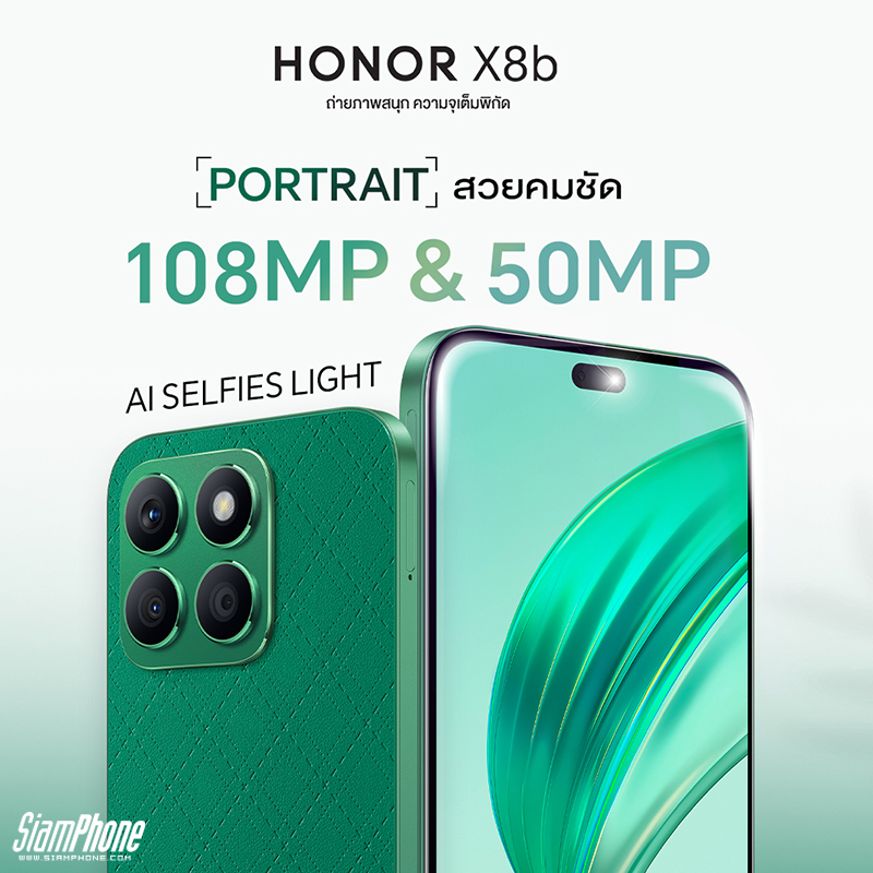 ออเนอร์ (HONOR) ประกาศเปิดตัวรุ่นใหม่ล่าสุด HONOR X8b สมาร์ทโฟนดีไซน์พรีเมียมเรียบหรู ภายใต้คอนเซปต์ “ถ่ายภาพสนุก ความจุเต็มพิกัด” โดยรุ่นนี้อัดแน่นไปด้วยคุณภาพและนวัตกรรมที่ทันสมัย ในราคาคุ้มค่า เน้นตอบโจทย์ทุกความต้องการของคนรุ่นใหม่โดยเฉพาะสายคอนเทนต์ครีเอเตอร์ ด้วยเทคโนโลยีกล้องหลังความละเอียดสูง พร้อมระบบกล้อง 3 ตัว ได้แก่ กล้องหลักความละเอียด 108MP, กล้อง Wide+Depth ความละเอียด 5MP และกล้องมาโครความละเอียด 2MP กล้องหน้าเซลฟี่ 50 ล้านพิกเซล พร้อม Soft Flashlight เพื่อให้ผู้ใช้เพลิดเพลินกับการถ่ายภาพและได้ภาพถ่ายที่สวยสมบูรณ์แบบในทุกโมเมนต์ ผสานหน้าจอ AMOLED ขนาดใหญ่ 6.7 นิ้ว ตลอดจนให้ความจุมากที่สุดถึง 512GB เมื่อเทียบกับสมาร์ทโฟนทั่วไปในเรทราคาใกล้เคียงกัน สามารถเป็นเจ้าของได้ในราคาคุ้มค่าเพียง 7,999 บาท เริ่มจำหน่ายวันแรกตั้งแต่วันที่ 10 พฤษภาคม 2567 เป็นต้นไป
