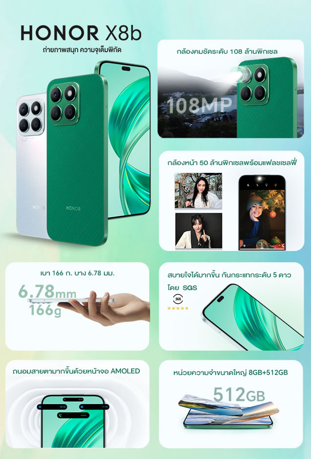 สรุปสเปคเบื้องต้นของสมาร์ทโฟน HONOR X8b