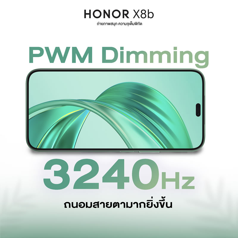 HONOR X8b เหมาะแก่การใช้งานทุกคอนเทนต์ หน้าจอเรียกได้ว่าสเปคดีกับหน้าจอประเภท AMOLED มีมาตรฐานสี DCI-P3 100% แสดงสีสันคมชัด ทั้งใช้งานกลางแจ้งสบายๆ ด้วยความสว่างสูงสุด 1200nits นอกจากนี้มีอัตราการกะพริบหน้าจอสูง 3240Hz PWM Dimming ลดอัตราการกะพริบหน้าจอ ลดโอกาสการทำให้สายตาเสีย ปวดตา ตาแห้งแม้ใช้งานเป็นเวลานาน ซึ่งเป็นรุ่นเดียว หนึ่งเดียวที่มีเทคโนโลยีดังกล่าวในช่วงราคานี้ นอกจากนี้หน้าจอมีเทคโนโลยี Anti-Drop Display ทางแบรนด์เคลมว่าหน้าจอมีความแข็งแรง ช่วยป้องกันการกระแทกหรือตกหล่นได้ดี