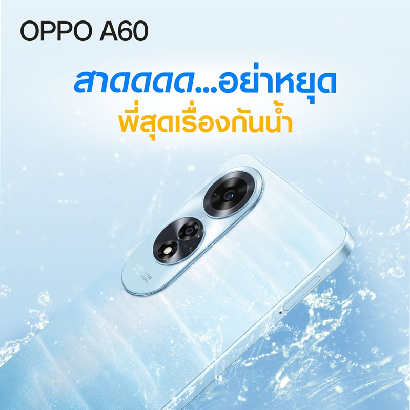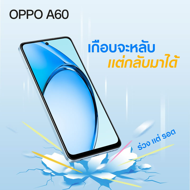 OPPO A60 ดีไซน์ใหม่โดดเด่นยิ่งขึ้นกับคอนเซ็ปต์ลวดลาย (Glowing Silk) ฝาหลังจะมีการออกแบบโทนสีเน้นความสวยงาม เป็นแฟชั่นมากยิ่งขึ้น โดยมีมาตรฐานป้องกันน้ำป้องกันฝุ่นระดับ IP54 และมาตรฐานระดับทหาร MIL-STD 810H จึงมั่นใจได้ในความแข็งแรงทนทาน มาพร้อมหน้าจอ 6.67 นิ้ว ความละเอียด HD+ มีอัตรารีเฟรชเรทกับอัตราการตอบสนองทัชสกรีน 90Hz อีกทั้งยังใช้งานหน้าจอได้เป็นปกติ แม้นิ้วมือจะเปียก โดยมีลำโพง Ultra Volume เสียงดังฟังชัดเร่งเสียงได้ถึง 300% ขับเสียงดังฟังชัด จะเล่นเกมหรือรับชมคอนเทนต์ก็เพลิดเพลิน