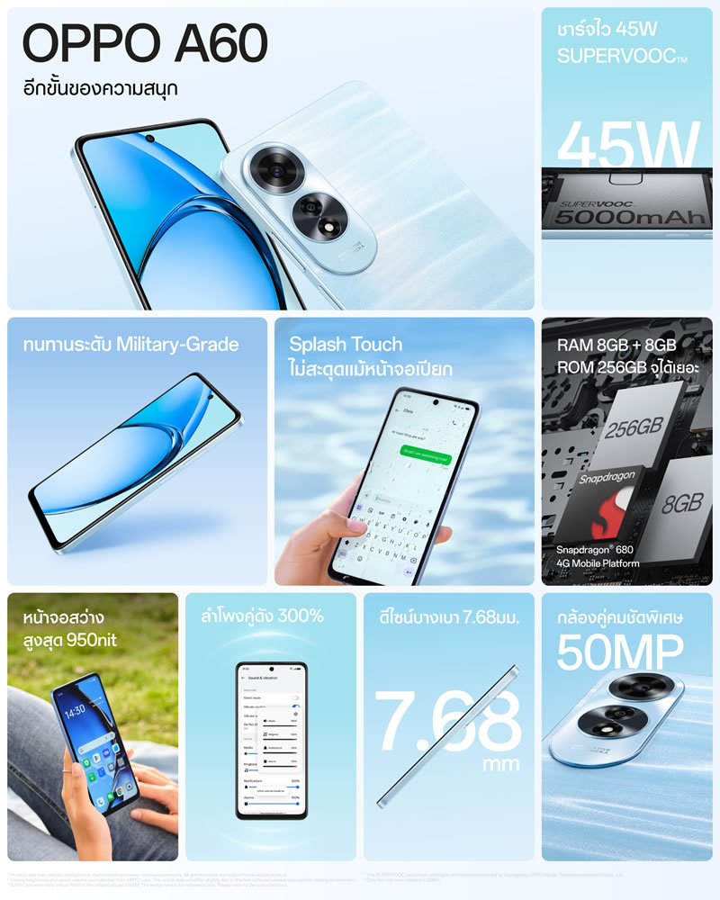 สรุปสเปคเบื้องต้นของสมาร์ทโฟน OPPO A60