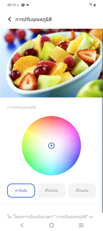เมนูสำหรับตั้งค่าการแสดงผลของหน้าจอ โดยสามารถปรับระดับความสว่าง, สี หรือเลือกโหมดการใช้งานได้ อาทิ โหมดอ่านทำให้โทนสีอุ่นขึ้น เพื่อความสบายตาในการใช้งาน และตั้งเวลาได้ด้วย นอกจากนี้ยังเปลี่ยนขนาดตัวอักษรภายในเครื่องได้ ถ้าใครต้องการตัวเล็ก ตัวใหญ่ก็เปลี่ยนในเมนูขนาดอักษรได้เลย รวมถึงการเปิดใช้งานแตะหน้าจอสองครั้งติดกันเพื่อปลุกหน้าจอ หรือเปิดใช้งานโหมดแสงทึบ, โหมดฟิลเตอร์แสงสีฟ้า, การซูมหน้าจอ เป็นต้น
