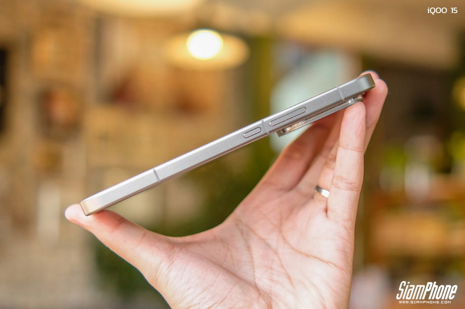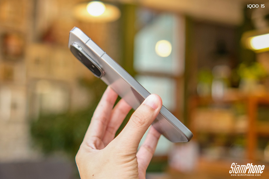iQOO 15 มี 2 รุ่น ได้แก่ รุ่น Legend และรุ่น Zen โดยรุ่น Legend มาพร้อมขนาดตัวเครื่อง 163.65 × 76.80 มม. ความหนา 8.17 มม. และน้ำหนักอยู่ที่ 220 กรัม ส่วนรุ่น Zen จะมีความหนาและน้ำหนักที่มากกว่าเล็กน้อย ความหนา 8.28 มม. และน้ำหนักอยู่ที่ 221 กรัม แม้จะให้แบตเตอรี่ขนาดใหญ่ถึง 7000mAh แต่ตัวเครื่องยังคงบาลานซ์น้ำหนักได้ดี ไม่รู้สึกเทอะทะเมื่อต้องใช้งานจริง ตัวเครื่องใช้วัสดุระดับพรีเมียมทั้งกระจกและเฟรมอะลูมิเนียมอัลลอยด์ ให้สัมผัสแข็งแรงและหรูหรา มาพร้อมหน้าจอ AMOLED ขนาดใหญ่ 6.85 นิ้ว ความละเอียด 3168 × 1440 พิกเซล (508 PPI) รองรับรีเฟรชเรทสูงถึง 144Hz ให้ภาพคมชัดและลื่นไหล ความสว่างสูงสุด 2600nits และพุ่งได้สูงสุดถึง 6000nits ทำให้มองเห็นได้ชัดแม้กลางแดดจัด พร้อมรองรับขอบเขตสีกว้าง P3 เพื่อคุณภาพภาพและสีสันระดับท็อป