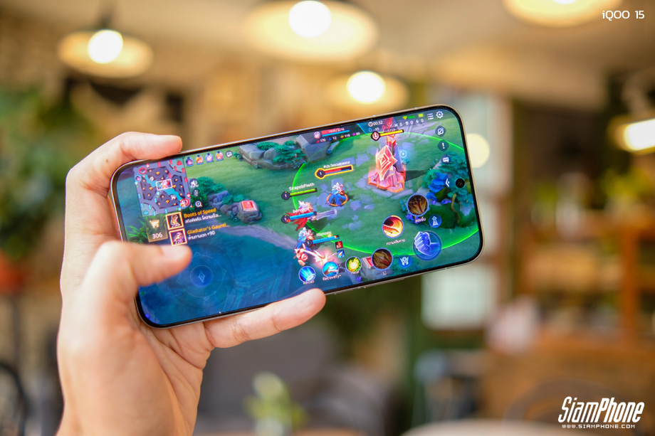 iQOO 15 ใช้ชิปเซ็ต Snapdragon® 8 Elite Gen 5 ซึ่งเป็นขุมพลังระดับแนวหน้าที่ออกแบบมาเพื่อรีดประสิทธิภาพการเล่นเกมแบบเต็มขั้น ผสานกับ Supercomputing Chip Q3 ที่ช่วยเพิ่มความคมชัดและความลื่นไหลในหลายเกม รองรับการเล่นเกมระดับโหดอย่าง Genshin Impact และ PUBG/BGMI ได้แบบเต็มสมรรถนะ พร้อมเฟรมเรตสูงสุดถึง 144 FPS ผ่านการอัปสเกลเฟรมในกว่า 40 เกม อีกทั้งยังเป็นครั้งแรกในสมาร์ตโฟนที่รองรับ Ray Tracing ครบทุกฉากใน Genshin Impact ให้แสงและเงาที่สมจริงราวกับเล่นบนคอนโซล พร้อมด้วยลำโพงสเตอริโอ Dual Master-Level 1511 และมอเตอร์สั่นคู่ Dual-Axis ที่ช่วยเพิ่มอรรถรสการเล่นเกมแบบ 4D