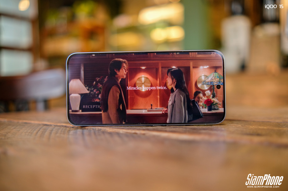 หน้าจอของ iQOO 15 คือหนึ่งในจุดขายที่เด่นที่สุด โดยเป็นรุ่นแรกที่ใช้หน้าจอ iQOO 15 × Samsung 2K LEAD OLED ความละเอียดสูง 2K พร้อมรีเฟรชเรต 144Hz ให้ภาพคมชัด สีสด และการตอบสนองลื่นระดับท็อป การสัมผัสไวเป็นพิเศษด้วยค่าการตอบสนอง 3200Hz (Instant Touch Sampling Rate) ที่จัดว่าอยู่ระดับสูงสุดของอุตสาหกรรม ความสว่างก็ทำได้ยอดเยี่ยมที่ 2600nits แบบเต็มพื้นที่หน้าจอ และสูงสุดถึง 6000nits ในบางส่วน ช่วยให้มองเห็นชัดแม้แดดจัด นอกจากนี้ยังรองรับสีสันกว้าง 118% NTSC เพื่อคุณภาพภาพระดับสูงสุดตามมาตรฐาน