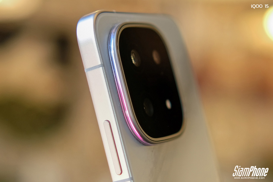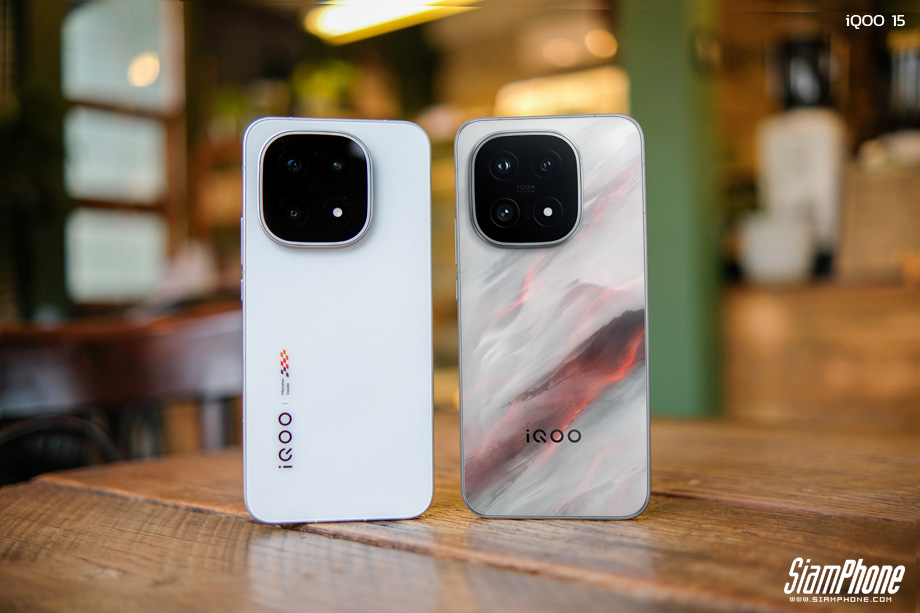 iQOO 15 มาพร้อมงานออกแบบระดับเรือธงที่ให้ฟีลพรีเมียมตั้งแต่แรกเห็น โดยมีสองสไตล์ให้เลือก ได้แก่ Legend ที่ได้รับแรงบันดาลใจจากรถแข่ง ใช้ฝาหลังกระจกขาวแบบด้าน ให้สัมผัสเรียบเนียนและหรูหรา และรุ่น Zen ที่โดดเด่นด้วยลวดลายภูเขาไฟสื่อถึงพลังความเร็วที่พร้อมพุ่งทะยานไปข้างหน้า ทรงเครื่องโค้งมนจับถนัด รองรับการถือเล่นเกมแนวนอนได้ดี โดยเฉพาะมุม R-Corner ที่ออกแบบมาเฉพาะ อีกทั้งยังมีดีไซน์ Deco แบบโปร่งใสบริเวณโมดูลกล้อง พร้อมเอฟเฟกต์แสงทั้งหน้า–หลังที่ช่วยเติมบรรยากาศเวลาบุคลเล่นเกมให้สมจริงยิ่งขึ้น