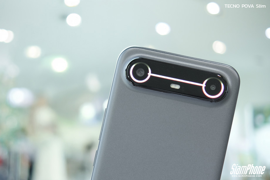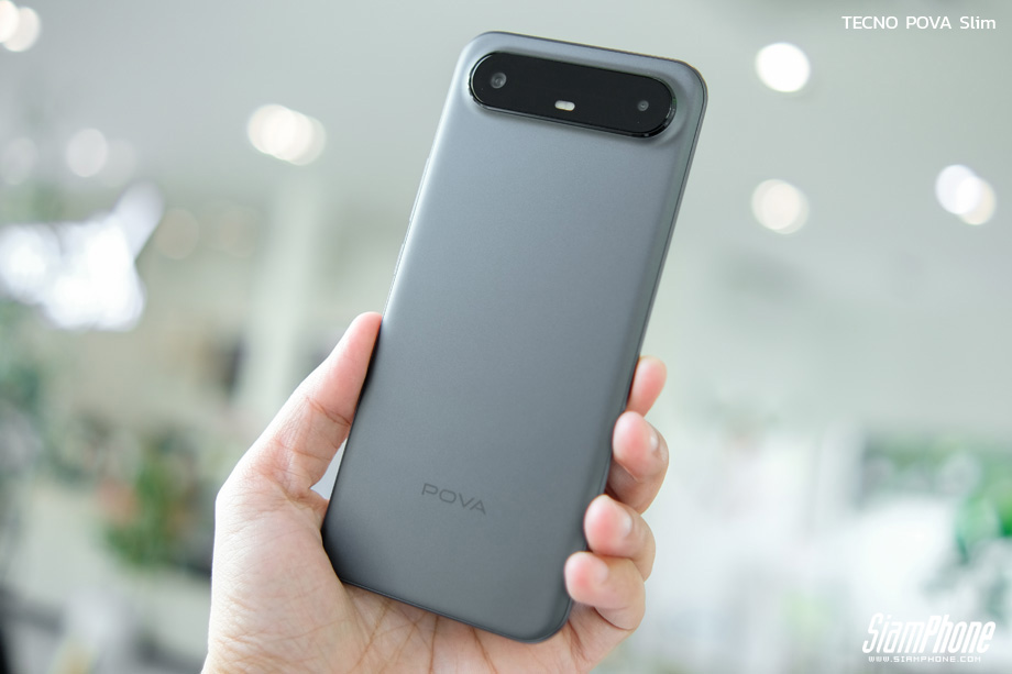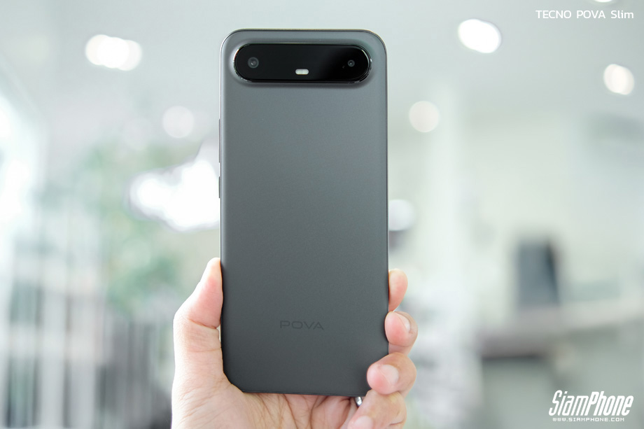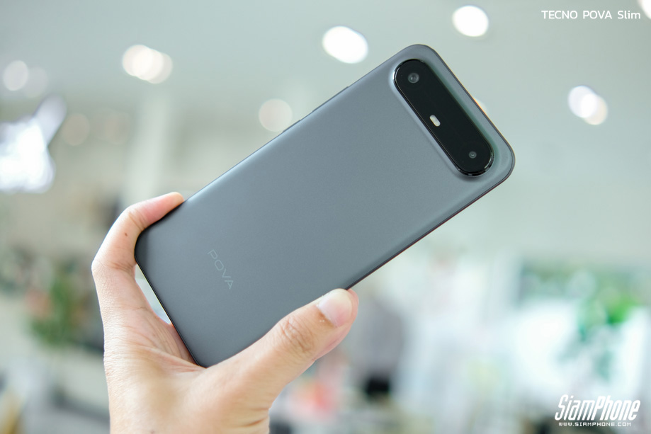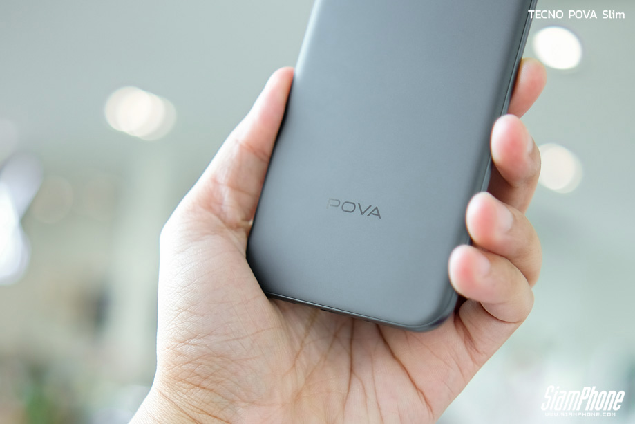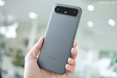 - ตัวเครื่องและวัสดุ: ฝาหลัง TECNO POVA Slim ผลิตจาก Flagship-grade Fiberglass หนาเพียง 0.36 มม. แต่แข็งแรงกว่าเดิม 300% ตัวเครื่องเป็นดีไซน์ 3D Ultra-slim โค้งรับอุ้งมือ
