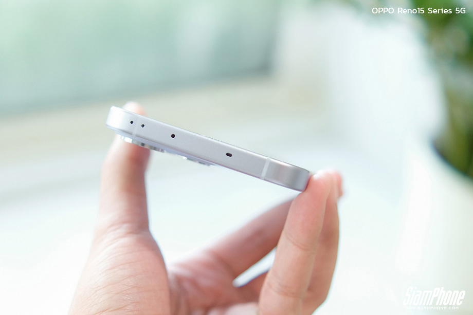 นอกจากความสวยงามของฝาหลังแล้ว OPPO Reno15 Series 5G ยังให้ความสำคัญกับประสบการณ์การจับถือ ด้วยดีไซน์ขอบเหลี่ยม ตัวเครื่องบางเฉียบ ช่วยให้ถือใช้งานได้ถนัดมือมากขึ้น ผสานกับกรอบอะลูมิเนียมเกรดอากาศยานที่ช่วยเสริมภาพลักษณ์ความพรีเมียม พร้อมหน้าจออัจฉริยะรองรับอัตราการรีเฟรชเรต 120Hz ที่เข้ากันได้ดีกับภาพรวมของดีไซน์สมัยใหม่ ทำให้ OPPO Reno15 Series 5G ไม่ใช่แค่สมาร์ตโฟนที่สวยสะดุดตา แต่ยังสะท้อนตัวตนของผู้ใช้ที่ชื่นชอบความแตกต่าง ความอิสระ และความหลากหลายในทุกมุมมองของการใช้งาน