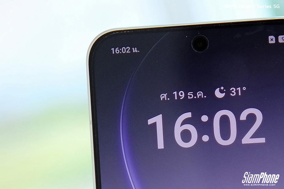 OPPO Reno15 Series 5G มาพร้อมกับหน้าจอแสดงผลขนาดใหญ่ รองรับอัตราการรีเฟรชเรตสูงสุด 120Hz ด้านบนของหน้าจอเป็นกล้องหน้าเจาะรูแบบ Punch-hole เหนือขึ้นไปบริเวณขอบจอเป็นลำโพงเสียง รอบตัวเครื่องประกอบไปด้วย