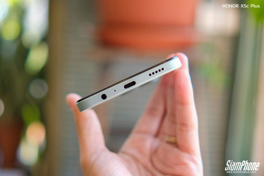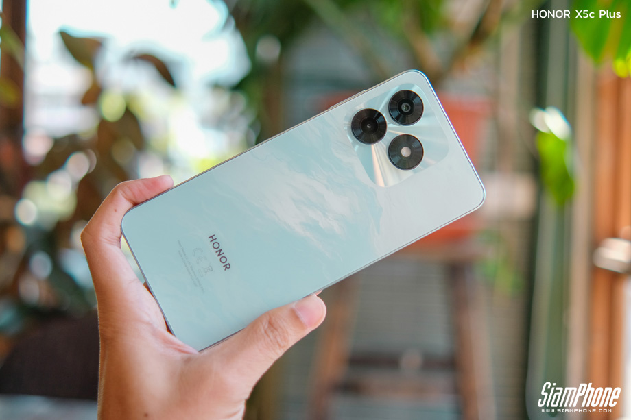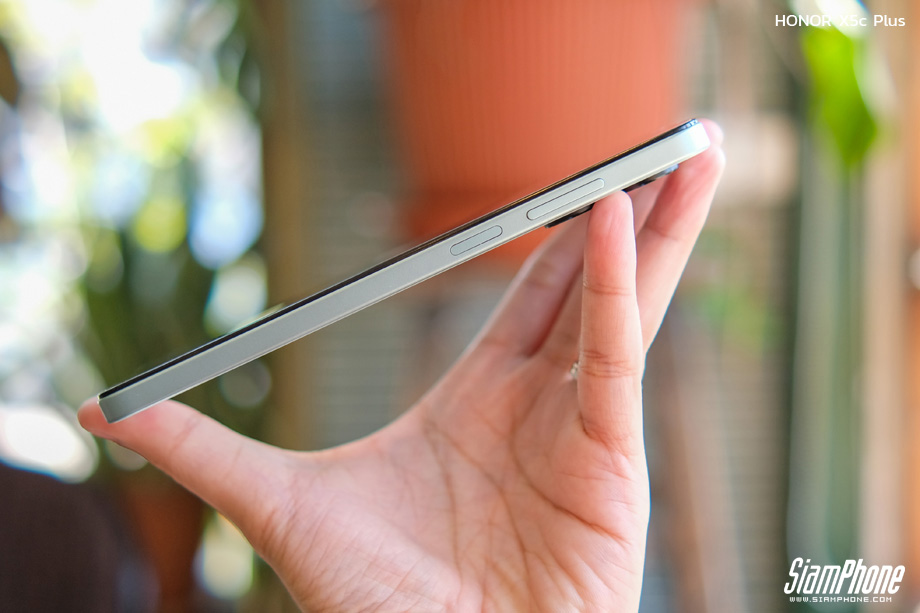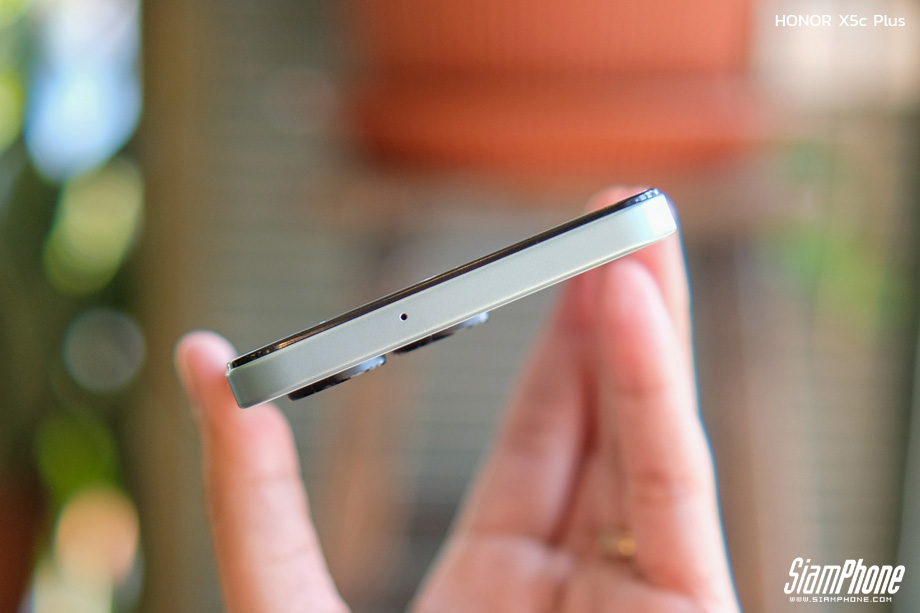 สัมผัสแรกเมื่อได้ลองหยิบ HONOR X5c Plus ขึ้นมาถือในมือ คือความรู้สึกประทับใจในความ "บางเฉียบ" เพียง 7.89 มิลลิเมตร ที่ทำให้น้ำหนัก 186 กรัม ดูเบาลงถนัดตา การกระจายน้ำหนักทำได้ดีเยี่ยม ไม่รู้สึกหนักหัวหรือท้ายเครื่อง ทำให้ถือใช้งานมือเดียวได้คล่องตัวและกระชับมือมากๆ