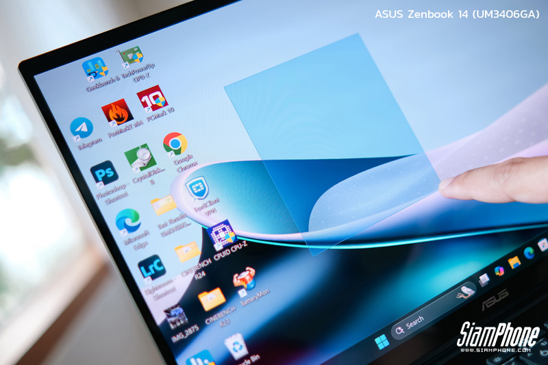 ในส่วนของประสบการณ์การใช้งานจริง หน้าจอ ASUS Lumina OLED แบบ Glossy display ให้คอนทราสต์ที่จัดจ้านถึง 1,000,000:1 และแสดงสีสันได้ระดับ 1.07 billion colors มิติภาพที่ได้จึงลึกและสมจริงมาก อาการหน่วงแทบไม่มีให้เห็นด้วย Response time ที่ต่ำเพียง 0.2ms แม้ Refresh rate จะจำกัดอยู่ที่ 60Hz แต่สำหรับสายงานนักสร้างสรรค์คอนเทนต์, การเสพความบันเทิงระดับ HDR หรือแม้แต่การเล่นเกมทั่วไปผ่าน AMD Radeon Graphics หน้าจอนี้สอบผ่านฉลุย ยิ่งรวมเข้ากับระบบเสียง Smart Amp Technology ที่ปรับแต่งโดย Harman Kardon และรองรับ Dolby Atmos ยิ่งทำให้การดูหนังฟังเพลงได้มิติเสียงที่โอบล้อมและมีพลังเกินขนาดตัวเครื่อง