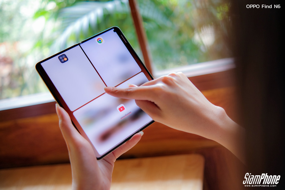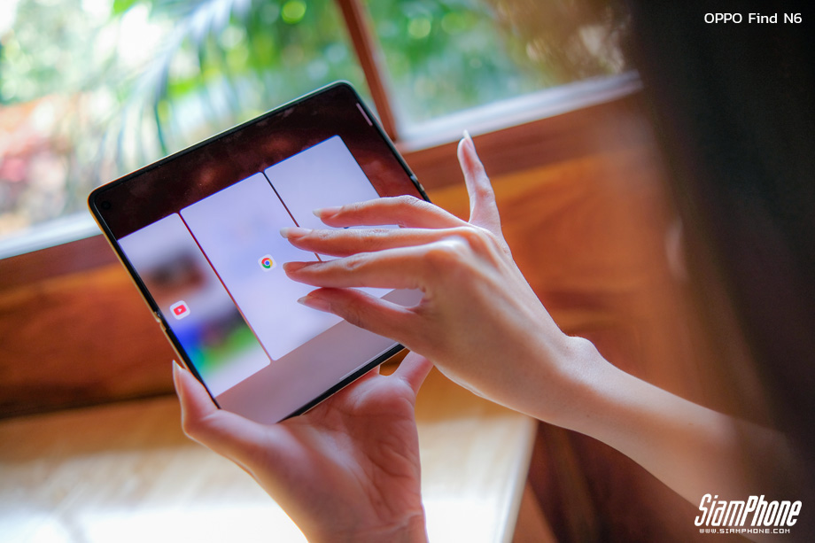 OPPO Find N6 ขับเคลื่อนด้วยระบบปฏิบัติการ ColorOS 16 ที่มอบอิสระในการทำงานผ่านฟีเจอร์หน้าต่างลอยอิสระ (Free-Flow Window) ผู้ใช้งานสามารถเปิดแอปพลิเคชันพร้อมกันได้สูงสุด 4 แอปฯ และสามารถปรับขนาดสัดส่วนหน้าต่างได้อย่างอิสระ เมื่อใช้งานร่วมกับฟีเจอร์ Boundless View โดยการใช้สี่นิ้วจีบออก จะเป็นการขยายพื้นที่ทำงานขนาดใหญ่ที่เปิดหลายแอปพร้อมกันได้อย่างลื่นไหลไร้รอยต่อ นอกจากนี้ ตัวเครื่องยังมีปุ่มลัดอัจฉริยะ Snap Key บริเวณด้านข้าง ที่สามารถกดเพื่อบันทึกภาพหน้าจอลงใน AI Mind Space หรือปรับแต่งเพื่อเข้าสู่โหมดกล้องได้อย่างรวดเร็ว