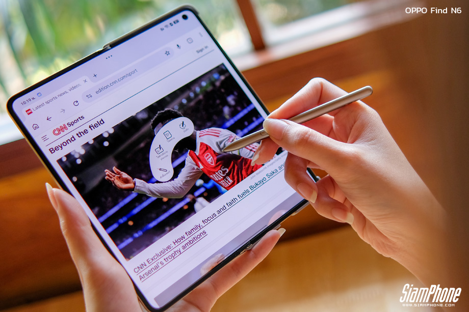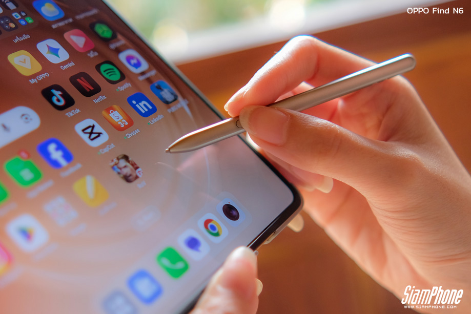 เติมเต็มประสบการณ์การขีดเขียนด้วยปากกา OPPO AI Pen ที่รองรับความไวต่อแรงกดถึง 4,096 ระดับ ให้สัมผัสที่แม่นยำและตอบสนองไวเหมือนใช้ปากกาจริง ปากกาสามารถเชื่อมต่อผ่าน Bluetooth และใช้งานได้อย่างเสถียรทั้งหน้าจอด้านนอกและหน้าจอหลักด้านใน รองรับฟีเจอร์อัจฉริยะมากมาย เช่น Quick Note สำหรับการจดบันทึกด่วนแม้ปิดหน้าจอ ฟีเจอร์เลเซอร์พอยเตอร์สำหรับการนำเสนองาน และ Circle to Capture ที่ให้ผู้ใช้วงกลมข้อความหรือรูปภาพเพื่อดึงข้อมูลมาใช้งานต่อได้อย่างรวดเร็ว ยิ่งไปกว่านั้น ปากกายังสามารถใช้เป็นรีโมทชัตเตอร์เพื่อกดถ่ายภาพระยะไกลได้เพียงคลิกเดียว