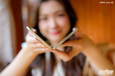 OPPO Find N6 เป็นสมาร์ตโฟนจอพับทรงหนังสือที่จุดเด่นคือดีไซน์อันบางเฉียบ มีขนาดตัวเครื่องเมื่อกางออกอยู่ที่ 159.87 x 145.58 x 4.21 มิลลิเมตร และเมื่อพับจะมีขนาดเพียง 159.87 x 74.12 x 8.93 มิลลิเมตร น้ำหนักเบาเพียง 225 กรัม เบาบางเทียบเท่าหรือยิ่งกว่าสมาร์ตโฟนมาตรฐานระดับแฟลกชิปทั่วไป การออกแบบภายนอกยังเน้นความพรีเมียมและทนทานขั้นสุดด้วยสถาปัตยกรรม Armour Shield ที่เสริมความแข็งแกร่งด้วยเฟรมอะลูมิเนียม 7000 Series ผสานกับฝาหลังที่ผลิตจากเส้นใยเกรดอากาศยาน ซึ่งมีความบางกว่ากระจกทั่วไปถึง 43% แต่ทนทานต่อการตกกระแทกได้อย่างเหนือชั้น และพร้อมลุยทุกสถานการณ์ด้วยมาตรฐานการป้องกันฝุ่นและน้ำระดับสูงสุดถึง IP56, IP58 และ IP59