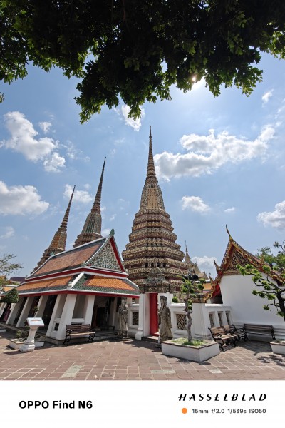 ด้านการถ่ายภาพ OPPO Find N6 จัดวางชุดกล้องหลัง 4 ตัวไว้ในโมดูลดีไซน์วงแหวนคอสมอส (Cosmos Ring) อย่างสมมาตร นำทัพด้วยกล้องหลักความละเอียดสูงสุด 200 ล้านพิกเซล (เซนเซอร์ ISOCELL HP5) รูรับแสง f/1.8 พร้อมระบบกันสั่น OIS ที่มอบความคมชัดพิเศษระดับมาสเตอร์พีซ ทำงานควบคู่กับกล้อง Ultra-Wide 50MP ที่สามารถรับแสงได้มากขึ้นถึง 50% เมื่อเทียบกับรุ่นก่อน และกล้อง Periscope Telephoto 50MP ระยะซูม 3 เท่า ที่ให้คุณภาพซูมระดับออปติคอลถึง 6 เท่า ซูมดิจิทัลได้ไกล 120 เท่า และรองรับการถ่ายภาพ Tele-macro ใกล้สุดที่ 10 เซนติเมตร เสริมทัพด้วยกล้องสีสันสมจริงที่มีเซนเซอร์ 9-channel Multispectral ช่วยให้การประมวลผลแสงสีขาวและเฉดสีต่างๆ สมจริงและเป็นธรรมชาติในทุกสภาวะแสง