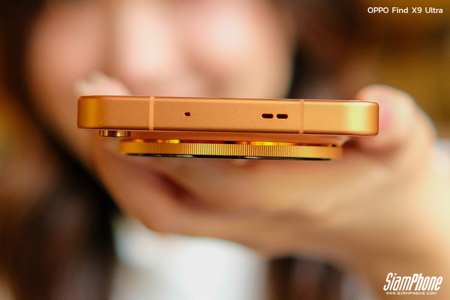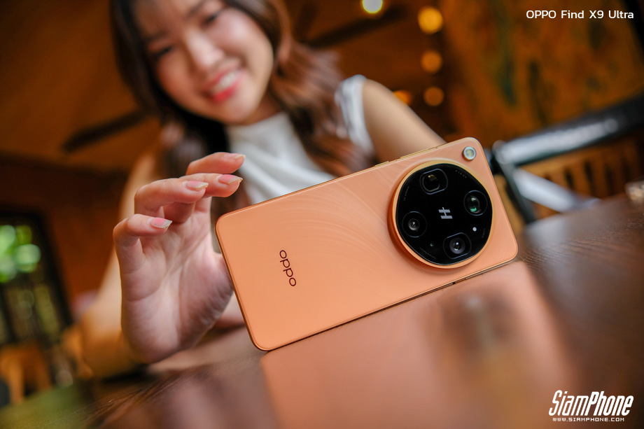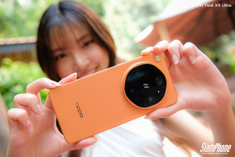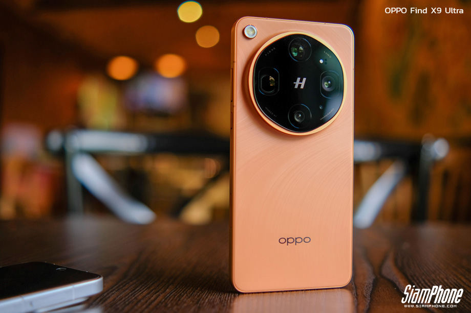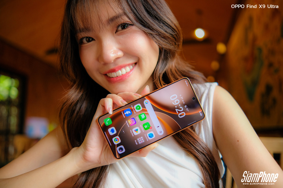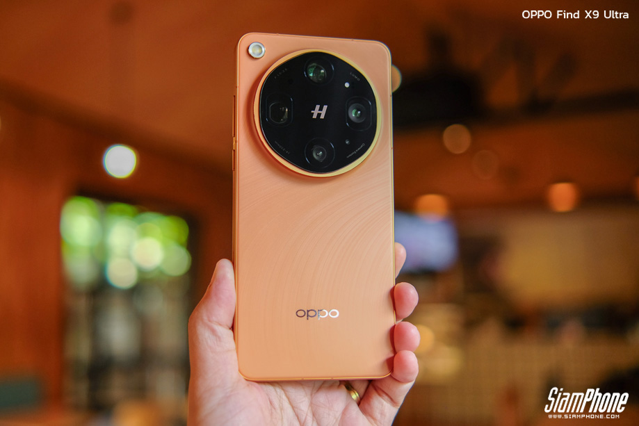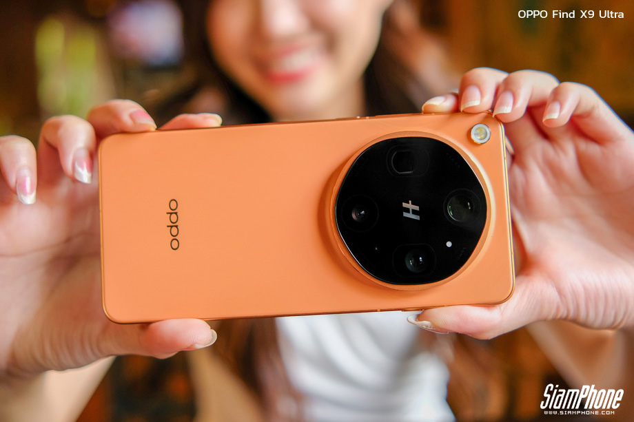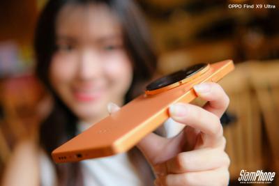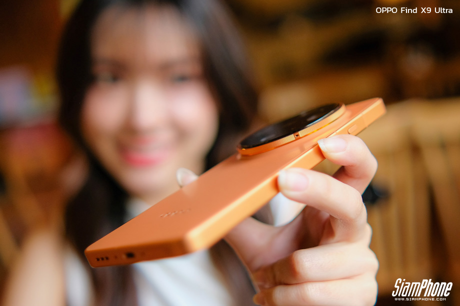 เริ่มจาก OPPO Find X9 Ultra มาพร้อมหน้าจอ LTPO AMOLED ขนาด 6.82 นิ้ว ความละเอียด 3168 × 1440 พิกเซล รองรับรีเฟรชเรท 1–144Hz ขอบจอบางเพียง 1.4 มม. ตัวเครื่องค่อนข้างใหญ่และมีความหนาพอสมควรตามสไตล์เรือธงสายกล้อง จุดเด่นอยู่ที่ดีไซน์ที่ได้แรงบันดาลใจจากกล้อง Hasselblad X2D โดยเฉพาะโมดูลกล้องทรงวงกลมขนาดใหญ่และฝาหลังสไตล์หนังที่ให้ความรู้สึกพรีเมียม สี Tundra Umber จะเน้นโทนคลาสสิกเรียบหรู ส่วนสี Canyon Orange จะโดดเด่นสะดุดตาและมีเอกลักษณ์มากขึ้น ซึ่งสีที่ทาง Siamphone รีวิวจะเป็นสีนี้ ตัวเครื่องจะผลิตจากเส้นใยเกรดเดียวกับที่ใช้ในอุตสาหกรรมการบิน มีความทนทานต่อแรงกระแทกสูง