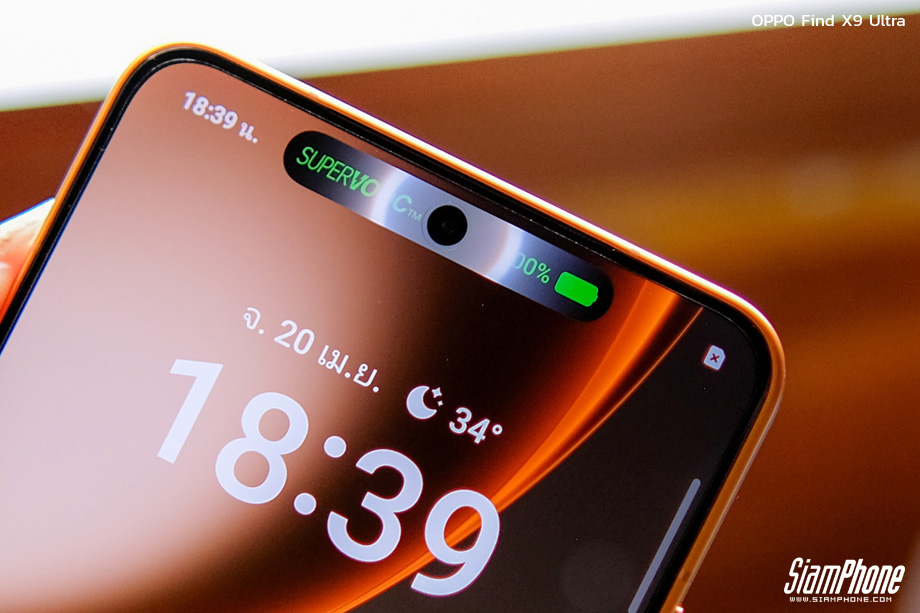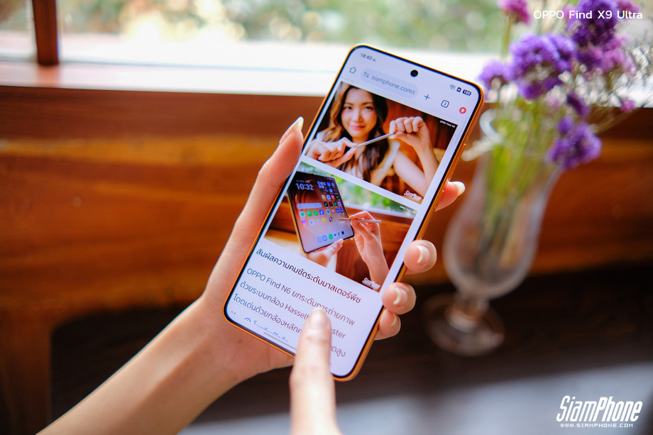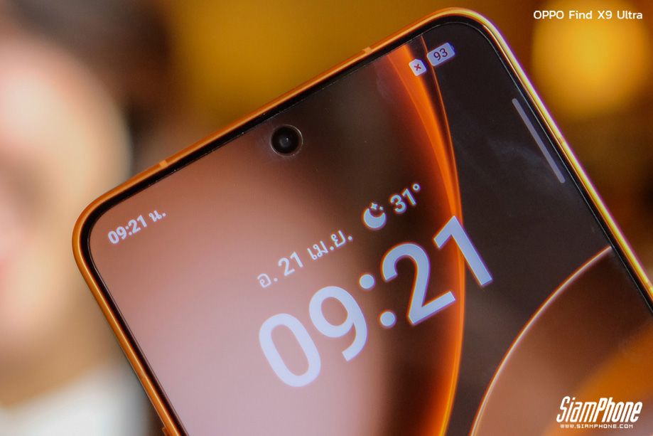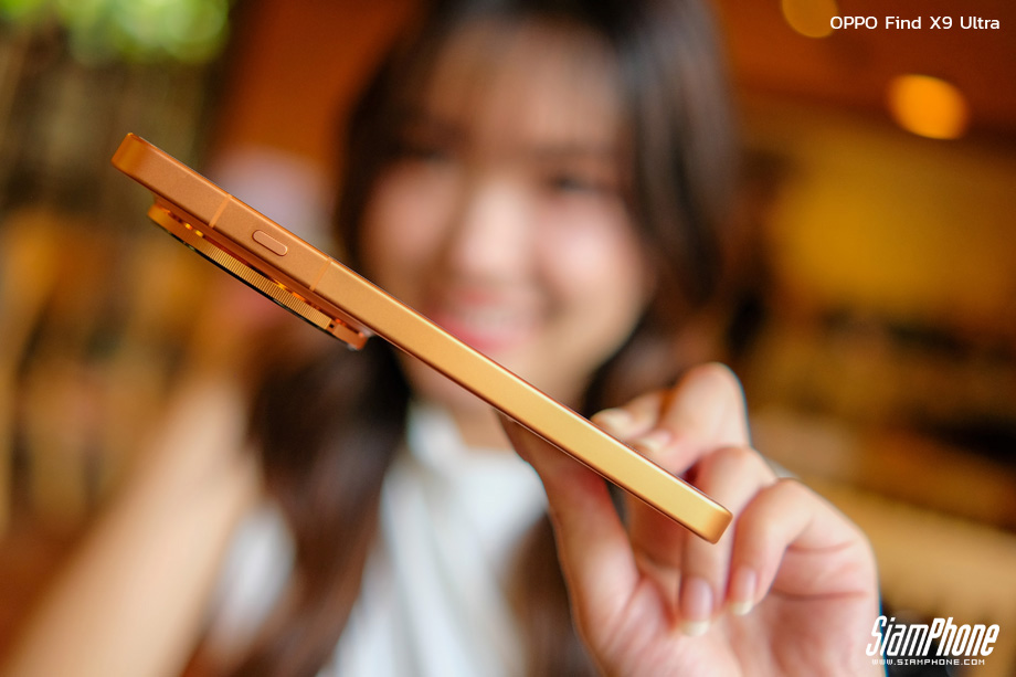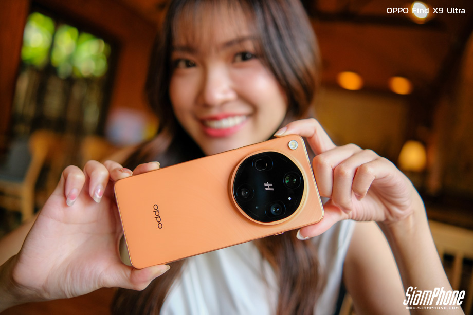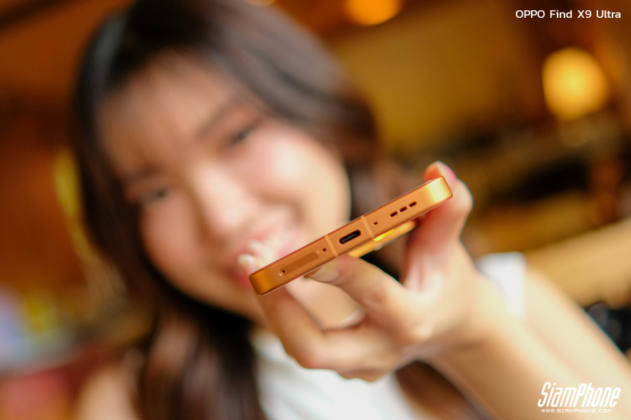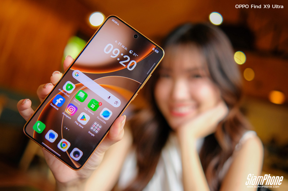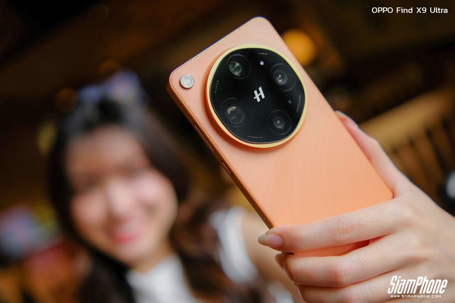 เริ่มจาก OPPO Find X9 Ultra มาพร้อมหน้าจอ LTPO AMOLED ขนาด 6.82 นิ้ว ความละเอียด 3168 × 1440 พิกเซล รองรับรีเฟรชเรท 1–144Hz ขอบจอบางเพียง 1.4 มม. ตัวเครื่องค่อนข้างใหญ่และมีความหนาพอสมควรตามสไตล์เรือธงสายกล้อง จุดเด่นอยู่ที่ดีไซน์ที่ได้แรงบันดาลใจจากกล้อง Hasselblad X2D โดยเฉพาะโมดูลกล้องทรงวงกลมขนาดใหญ่และฝาหลังสไตล์หนังที่ให้ความรู้สึกพรีเมียม สี Tundra Umber จะเน้นโทนคลาสสิกเรียบหรู ส่วนสี Canyon Orange จะโดดเด่นสะดุดตาและมีเอกลักษณ์มากขึ้น ซึ่งสีที่ทาง Siamphone รีวิวจะเป็นสีนี้ ตัวเครื่องจะผลิตจากเส้นใยเกรดเดียวกับที่ใช้ในอุตสาหกรรมการบิน มีความทนทานต่อแรงกระแทกสูง