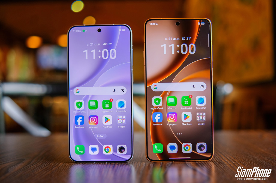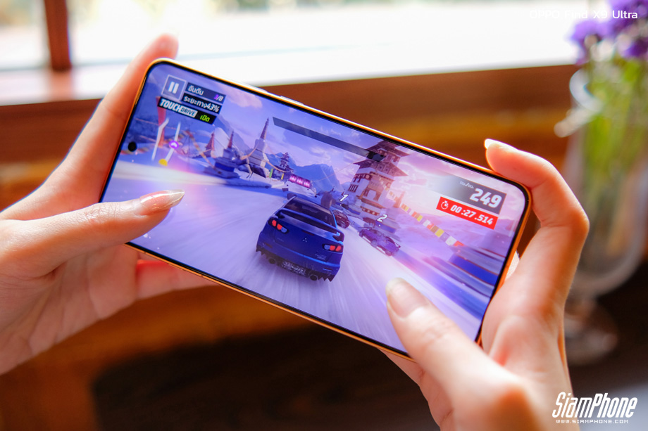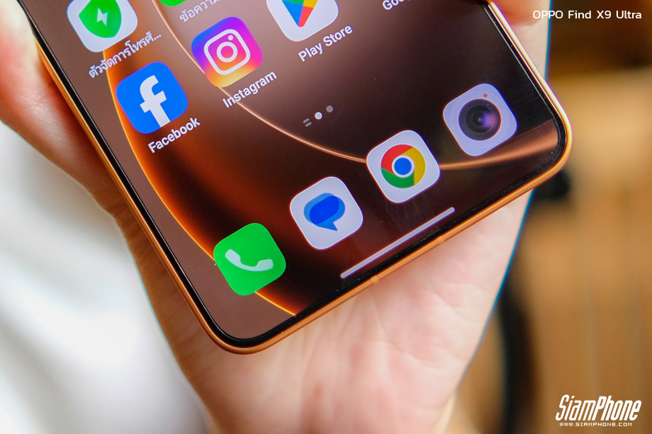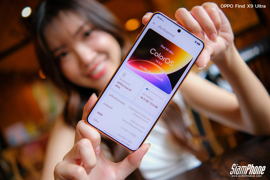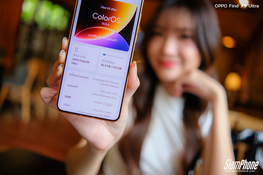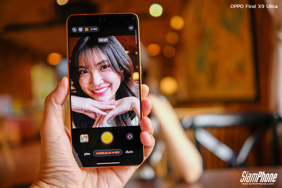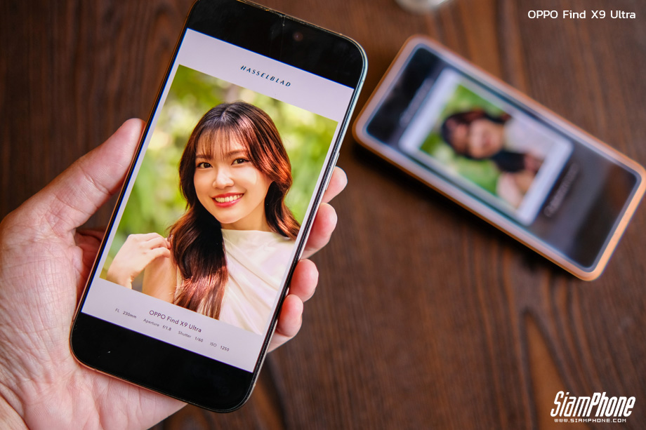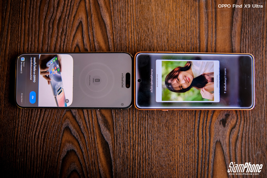 เริ่มจาก OPPO Find X9 Ultra มาพร้อมหน้าจอ LTPO AMOLED ขนาด 6.82 นิ้ว ความละเอียด 3168 × 1440 พิกเซล รองรับรีเฟรชเรท 1–144Hz ขอบจอบางเพียง 1.4 มม. ตัวเครื่องค่อนข้างใหญ่และมีความหนาพอสมควรตามสไตล์เรือธงสายกล้อง จุดเด่นอยู่ที่ดีไซน์ที่ได้แรงบันดาลใจจากกล้อง Hasselblad X2D โดยเฉพาะโมดูลกล้องทรงวงกลมขนาดใหญ่และฝาหลังสไตล์หนังที่ให้ความรู้สึกพรีเมียม สี Tundra Umber จะเน้นโทนคลาสสิกเรียบหรู ส่วนสี Canyon Orange จะโดดเด่นสะดุดตาและมีเอกลักษณ์มากขึ้น ซึ่งสีที่ทาง Siamphone รีวิวจะเป็นสีนี้ ตัวเครื่องจะผลิตจากเส้นใยเกรดเดียวกับที่ใช้ในอุตสาหกรรมการบิน มีความทนทานต่อแรงกระแทกสูง