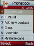 บันทึกรายชื่อลงในเครืองได้ 1,000 รายชื่อ ในแต่ละรายชื่อสามารถใส่รายการ ต่าง ๆ ได้ 11 รายการ คือ ชื่อ-นามสกุล หมายเลขโทรศัพท์มือถือ หมายเลขโทรศัพท์บ้าน หมายเลขโทรศัพท์ที่ทำงาน หมายเลขโทรสาร หมายเลขอื่น ๆ ที่อยู่อีเมลล์ กำหนดรูปภาพหรือวีดีโอผู้โทร ตั้งเสียงเรียกเข้า ตั้งกลุ่มผู้โทร และบันทึกข้อมูลเพิ่มเติม สำหรับการตั้งกลุ่มผู้โทรแบ่งออกเป็น 4 กลุ่ม คือ Family, Office, Friends และ Not assigned