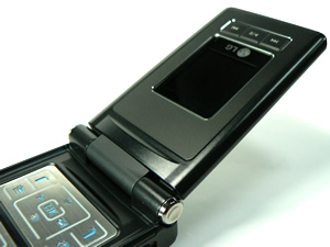 ด้านหน้า - ฝาพับด้านหน้าไม่ได้ปิดทับตัวเครื่องหมดแต่ด้านล่างยังเป็นส่วนของตัวเครื่องที่มีลำโพงสองตัวให้เสียงสามมิติ ส่วนตัวฝาพับตรงกึ่งกลางจะเป็นจอแสดงผลภายนอก ถัดลงมาใต้จอเป็นปุ่มลัดในการเล่นเพลงผู้ใช้จึงสามารถเปิดเพลงฟังได้ทันทีโดยไม่ต้องเปิดฝาพับและเข้าไปเปิดโปรแกรม