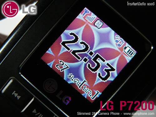ในขณะที่เล่นเพลงอยู่สามารถยังสามารถตั้งค่าเพิ่มเติมได้อีก โดยกดเลือกตัวเลือกจะมีเมนูขึ้นมา 4 เมนู คือ แสดงรายการเพลง ซ้ำ ตั้งค่าเป็นเสียงเรียกเข้า และการตั้งค่า กล้องดิจิตอล (Digital Camera) กล้องดิจิตอลของ LG P7200 มีความละเอียด 2 ล้านพิกเซล พร้อมไฟแฟลช มีฟังค์ชั่นถ่ายภาพระยะใกล้ (Macro) และปรับภาพอัตโนมัติ (Auto Fosuc) เข้าสู่โหมดถ่ายภาพได้ง่าย ๆ เพียงกดปุ่มชัตเตอร์ที่ด้านซ้ายของเครื่องและเลือกเมนูถ่ายรูป (หากถ่ายวิดีโอให้เลือกเมนูถ่ายวิดีโอ) จากนั้นตั้งค่ากล้องโดยการกดปุ่มซอฟต์คีย์ซ้ายจะมีเมนูเป็นไอคอนขนาดเล็กขึ้นมาใต้หน้าจอพร้อมข้อความบอกชื่อเมนู ใช้ปุ่มควบคุมทิศทางซ้าย-ขวาเพื่อเลือกเมนูและปุ่ม OK เพื่อเลือกการตั้งค่าของแต่ละเมนู