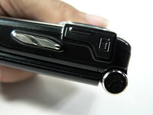 ด้านขวาของเครื่อง - ส่วนบนสุดจะเป็นช่องเสียบการ์ดหน่วยความจำภายนอก (TransFlash/microSD Card) ถัดลงมาเป็นปุ่มปรับระดับเสียง และที่เสียบสายชาร์จแบตเตอรี่ซึ่งมีที่ปิดกันฝุ่น