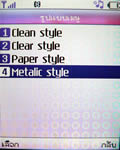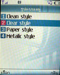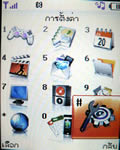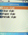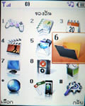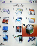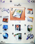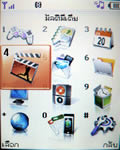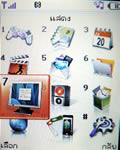 เมนูแสดงผลเป็นภาพไอคอนเคลื่อนไหวได้ วางเรียงแบบตาราง 4 แถว 3 คอลัมน์ รวม 12 เมนูหลักด้วยกัน เปลี่ยนรูปแบบสีเมนูได้ 4 สี (Clean style, Clear style, Paper style, Metalic style) เปลี่ยนรูปแบบสีเมนูได้โดยเข้าไปที่เมนูแสดง เลือกรูปแบบเมนู