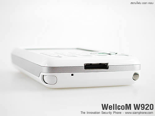 ด้านซ้ายของตัวเครื่อง - ส่วนบนสุดมีรูร้อยสายคล้องข้อมือ หรือสายคล้องคอ (ซึ่ง WellcoM W920 ได้แถมปากกา Stylus สีแดงมาให้ พร้อมสายคล้องกับตัวเครื่อง) ถัดลงมาจะพบกับปุ่มประบระดับเสียง (เพิ่ม/ลด) ตามด้วยปุ่มชัตเตอร์ และ มุมล่างเครื่องจะพบกับเสาอากาศ ที่สามารถยืดออกมาและหดเก็บได้สะดวก