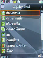 สมุดโทรศัพท์ - ค้นหาด่วน, ค้นหารายชื่อ, เพิ่มรายชื่อ, คัดลอกทั้งหมด,ลบ,กลุ่มผู้โทร, เลขหมายอื่นๆ, การตั้งค่า, สายโทรเข้าเป็นภาพ, สายโทรเข้าเป็นเสียง, สายโทรเข้าเป็นวิดีโอ
