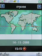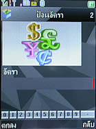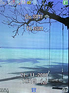 จอแสดงผลสามารถ เลือกเปลี่ยนภาพพื้นหลัง (Wallpaper) ตั้งค่าภาพพักหน้าจอ (Screen saver)ด้านล่างจะเป็นไอคอนสกรีนติดหน้าจอ เป็นเมนูลัดสำหรับเข้า เมนูหลัก, รายการสมุดโทรศัพท์, เขียนข้อความ, กล้อง และแหล่งเก็บข้อมูล