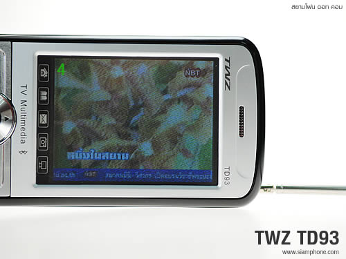 โทรทัศน์ (TV Tuner) TWZ TD93 มีปุ่มทางลัดเปิดโทรทัศน์ได้ทันที ติดตั้งไว้ที่ด้านขวาของแผงปุ่มควบคุม หรือจะเปิดจากเมนูหลักก็ได้ รับชมโทรทัศน์ โดยเลือกเมนูค้นหาช่องรายการเพื่อทำการค้นหาสถานีอัตโนมัติ แสดงภาพเต็มหน้าจอในแนวนอนด้วยการกดหน้าจอหนึ่งครั้ง ปรับความสว่างหน้าจอและระดับเสียงได้ 6 ระดับ